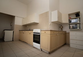 A three-story mixed-use workshop-warehouse-office building with a floor area of 1,390 sqm, comprising a basement with a 252 sqm warehouse accessible by a 1-ton capacity freight elevator, ground floor with a 713 sqm heated warehouse/operating area with level access gate, a 425 sqm first-floor area accessible by a 1-ton capacity freight elevator, of which 277 sqm is renovated into office and worker accommodation, with the remaining area being unheated warehouse space.
