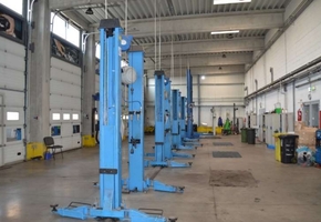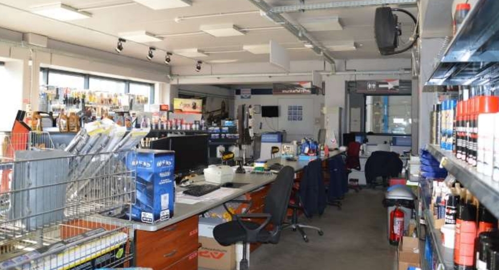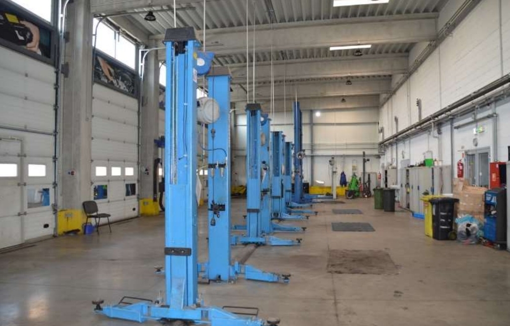 430 sqm service/workshop area, equipped with 9 sectional doors (3 × 4 m) and vehicle lifts