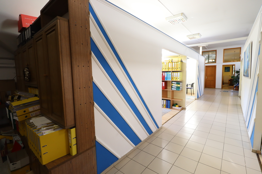 The upper floor is 280 sqm, accessible by stairs, and features air-conditioned office space. Due to the building’s layout, an additional 200 sqm of office space can easily be built.