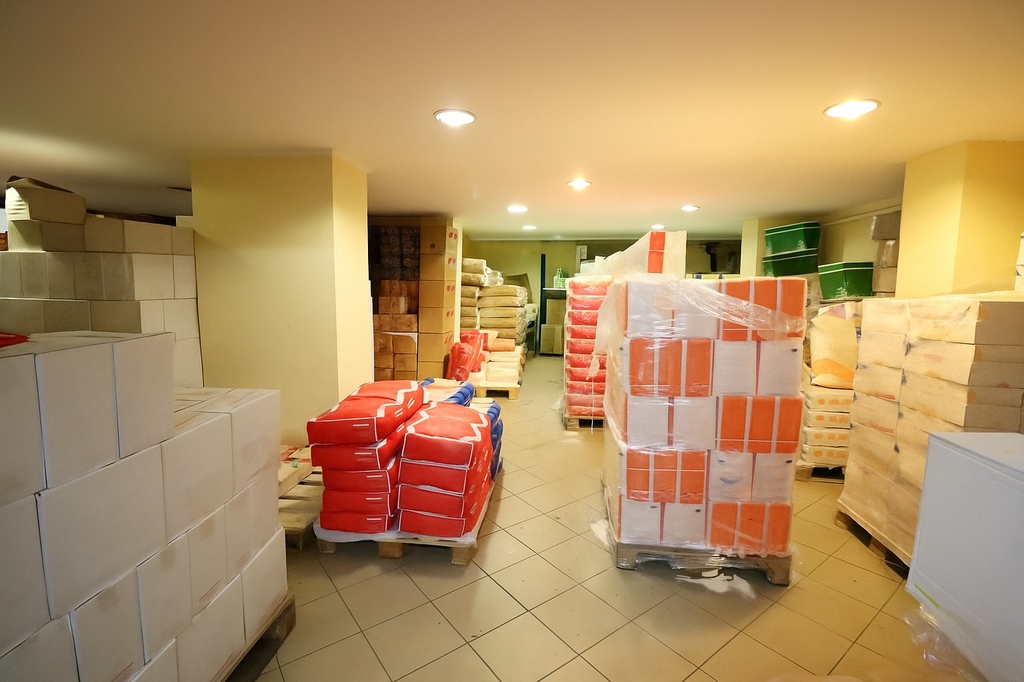 The ground floor area is currently divided into 4 independent units (storage or commercial use), each with its own gate, social facilities, and heating. Ceiling height: 2.5–4 m.