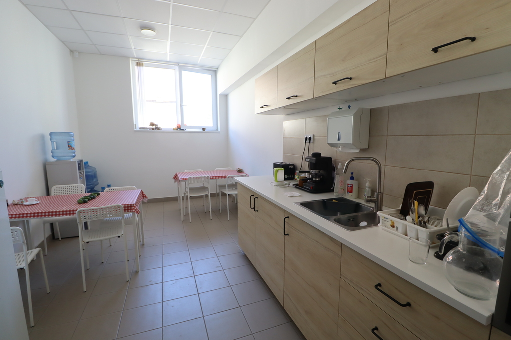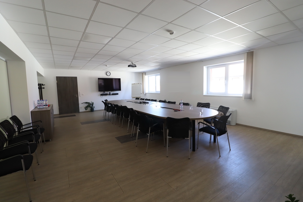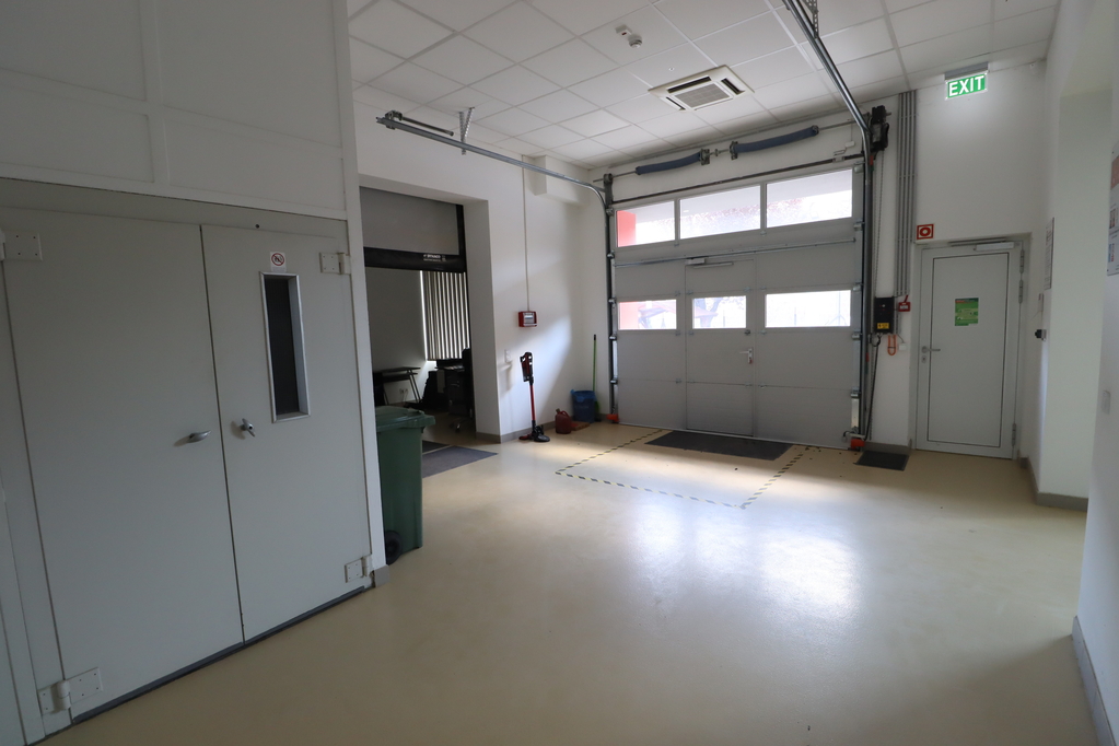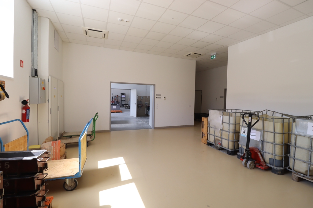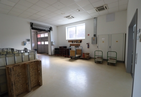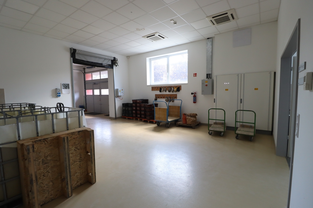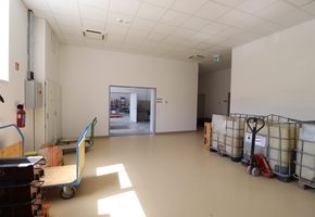 A gross 834sqm (net 697sqm) area currently divided into several rooms that can be merged as needed. It features an industrial floor with sections of resin and dust-free concrete. The space is heated and air-conditioned using a fan-coil system. It has 2 gates measuring 1.8x2.7m and one gate measuring 3.1x2.9m. The operational area also includes office and social facilities. Ceiling height: 3-3.5m.