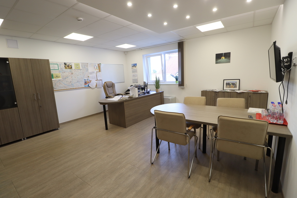 A gross 408sqm (360 sqm net) office space with a corridor layout and individual office rooms. The offices are equipped with heating/cooling fan-coil systems.