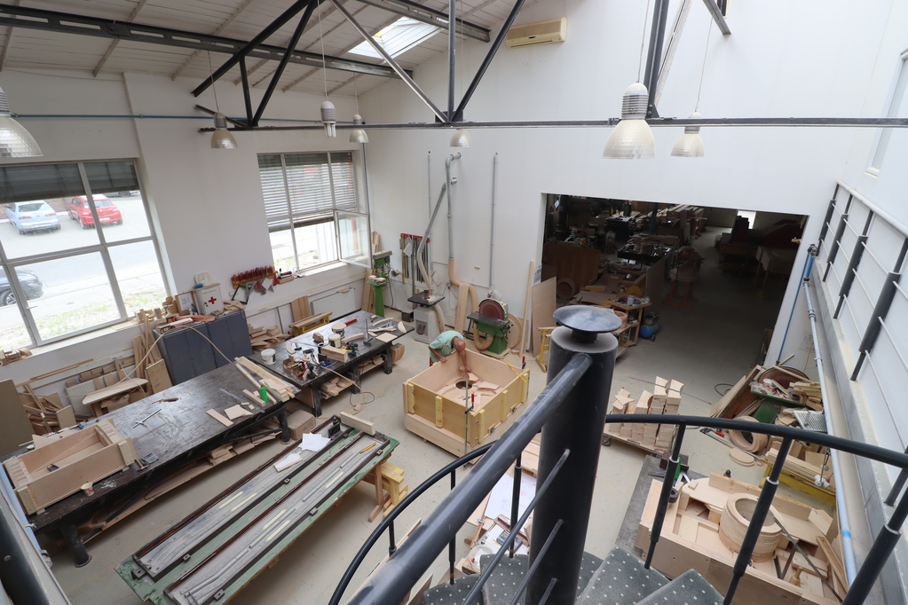 A 500 sqm hall section with a clear internal height of 4.5 meters, epoxy resin flooring, radiator heating, air conditioning, a 4.5×3.7m level-access gate, a small mezzanine office, and social/utility block.