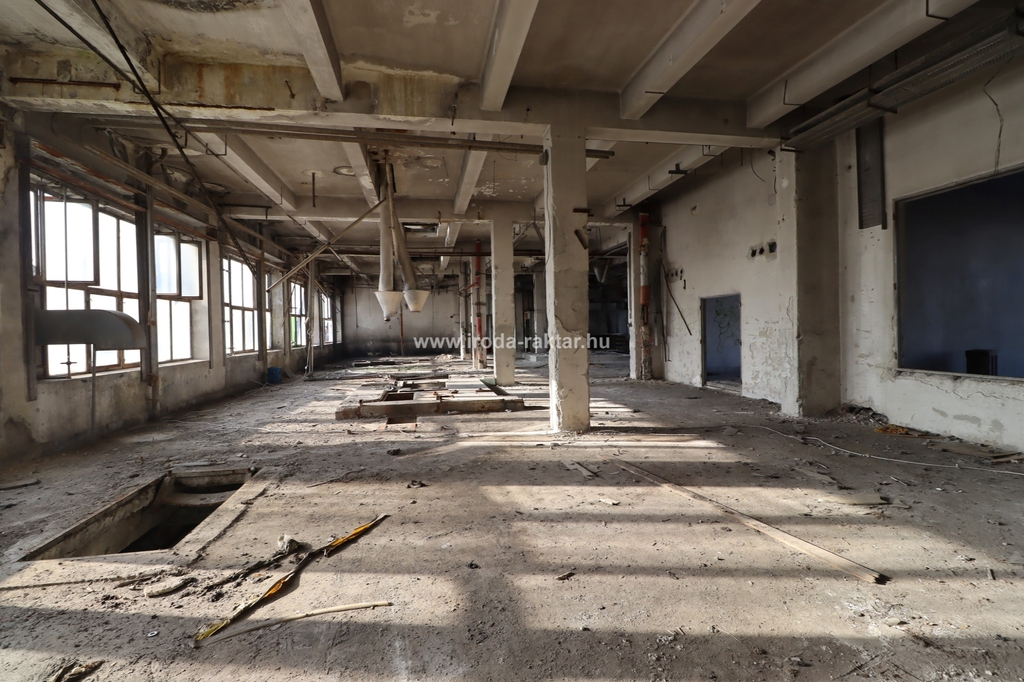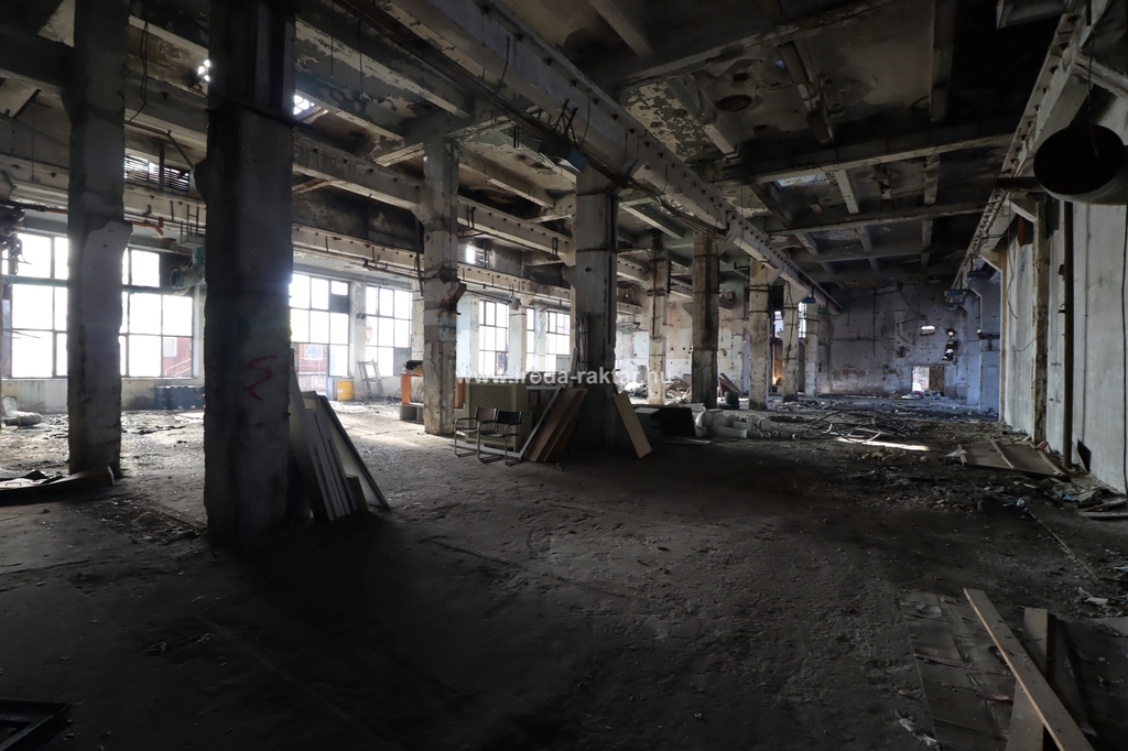 - gross 6165 sqm, 4-story industrial building. The ground floor has a footprint of 1850 sqm with a ceiling height of 6.7 meters. The upper floors each have a gross area of 1439 sqm, accessible via two out-of-use cargo lifts with a capacity of 2 tons each, as well as stairs. The ceiling heights on the upper floors range from 4.1 to 4.6 meters. The entire building requires a complete renovation!