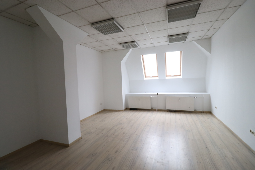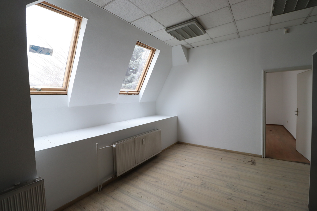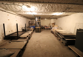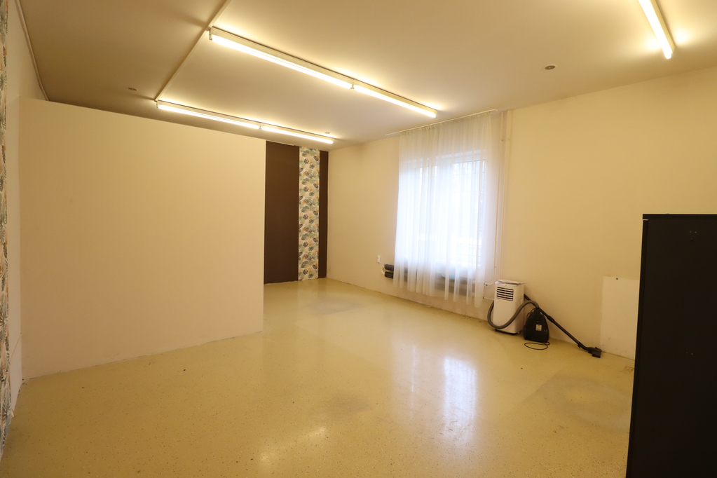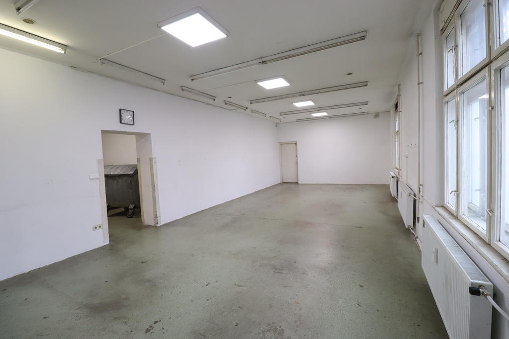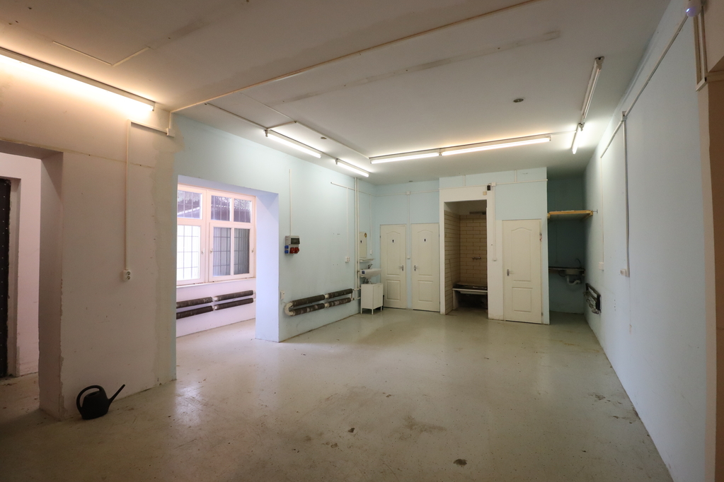 483 sqm with a ceiling height of 2.9 m, equipped with radiator heating and 1.8 × 2.4 m industrial gates. The space is currently divided into several units, which can be interconnected. Flooring is partly resin-coated and partly tiled.