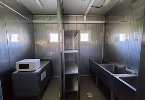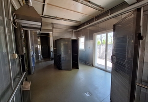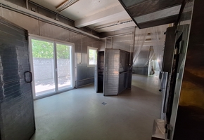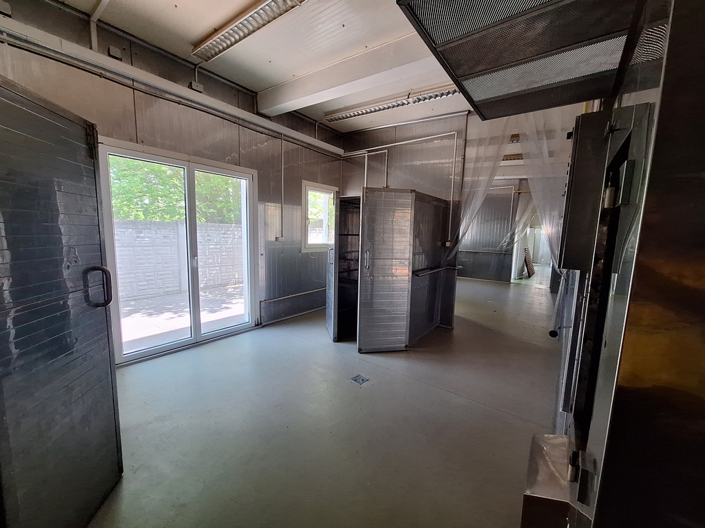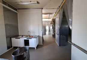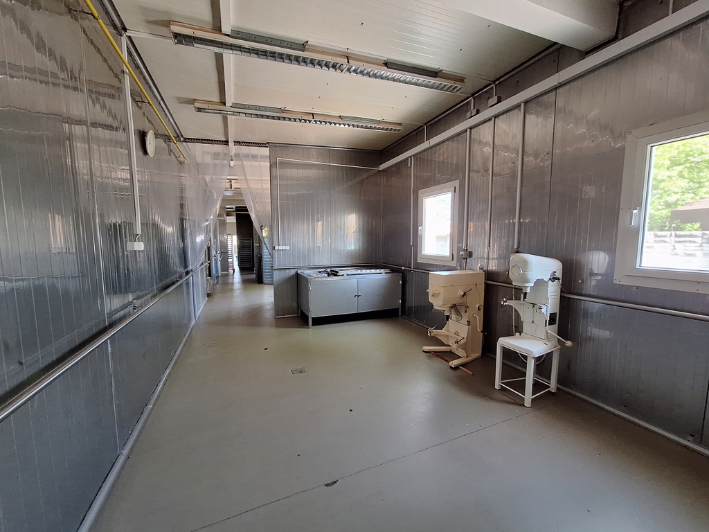The main facility building has a net floor area of 344.78 sqm. It is a steel-framed structure, designed according to regulations, with washable sandwich panel cladding and floor drains. The internal spaces are separated by mobile walls, making the interior layout easily adjustable.