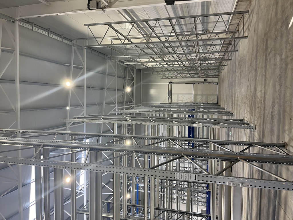 The building was constructed in 2021, featuring 12cm sandwich panel walls, a dust-free industrial concrete floor with a load capacity of 5t/sqm, 2 ground-level gates, and 2 docking gates.