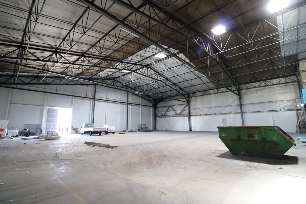 A 5,300 sqm steel-framed hall, divided into multiple units, with 10–12 m internal height and 4 cm sandwich panel walls