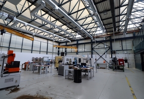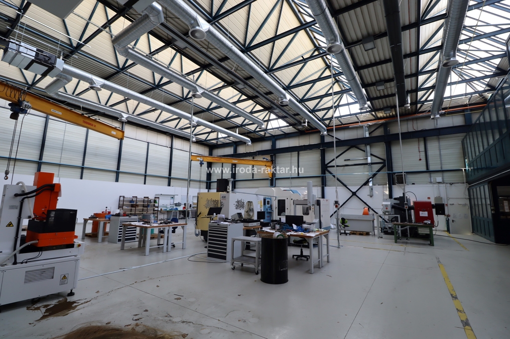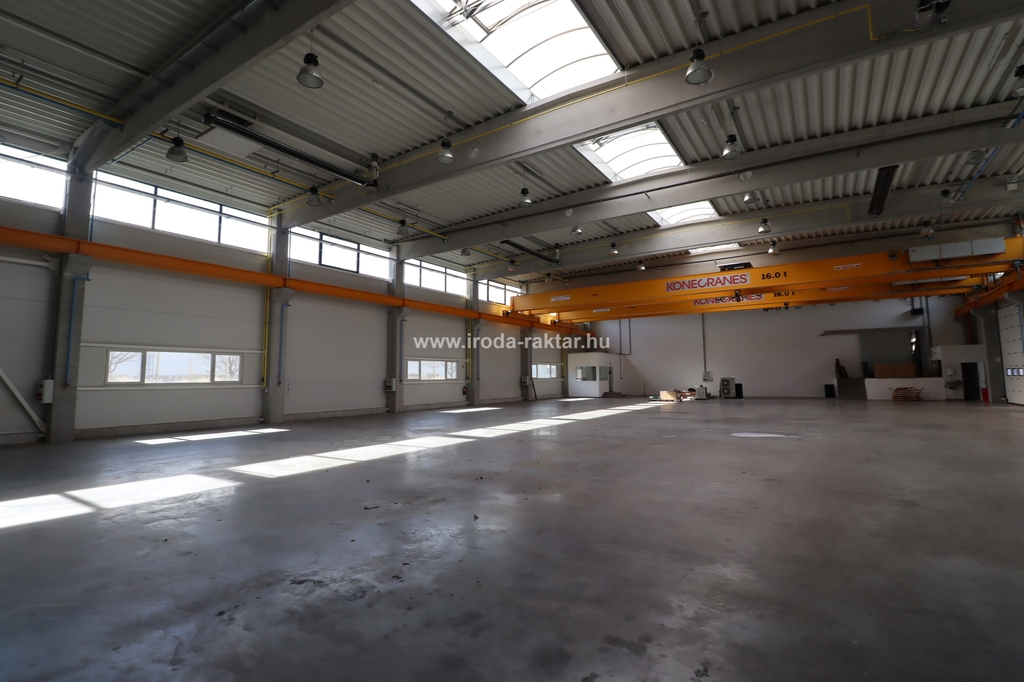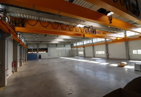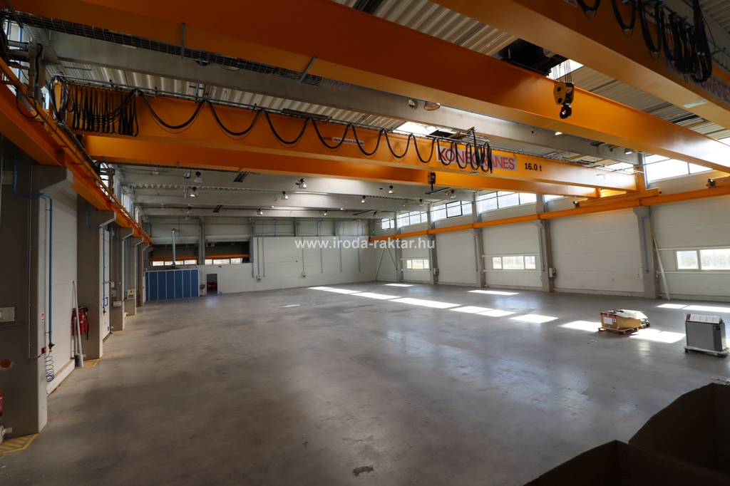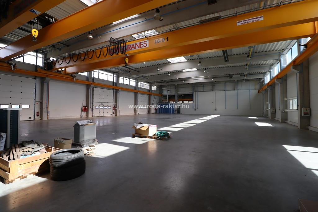 - 1115sqm large manufacturing hall with two cranes with the capacity of 16t each. It has dustfree concrete floor, 3 gates on field level, with the size of 4.3*4.6m.