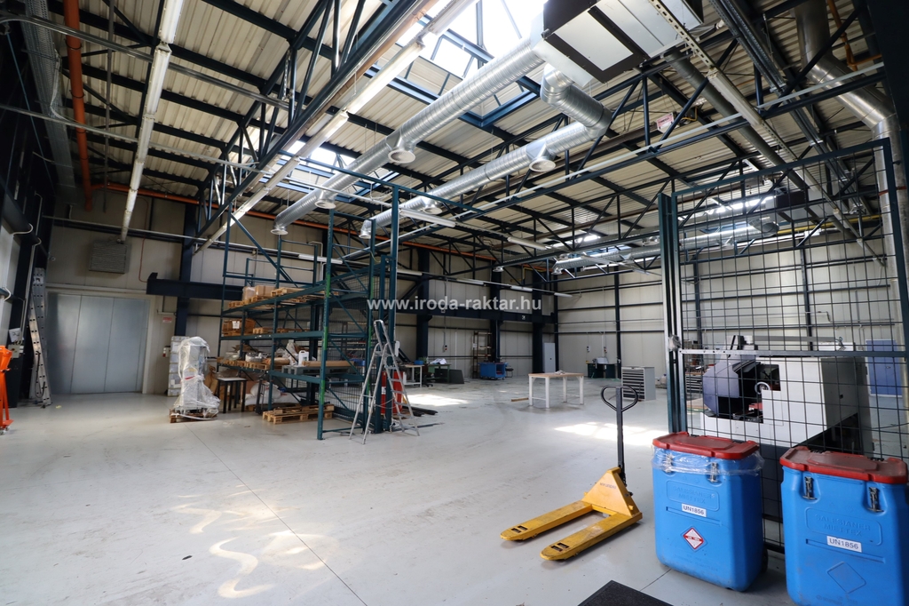 - 798sqm large manufacturing hall with 8m internal height, heated by black radiants, air-conditioned, gate with ramp, size: 4.6*4m. Resin floor. Consists of manufacturinga area, test labor, small office.