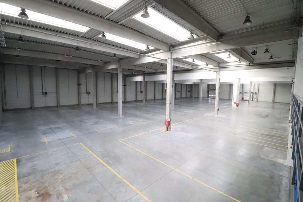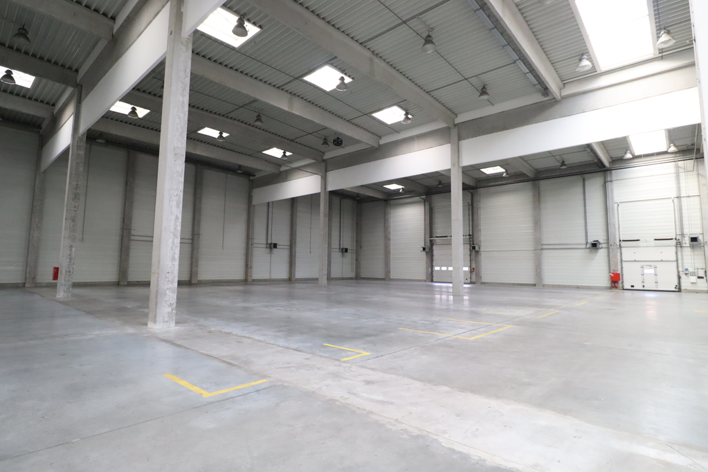 -5055sqm large storage with 11.2m internal height, dustfree concrete floor, insulated sandwichpanel, 6 gates on field level, 4 docking levellers. Heated by heater blowers.
