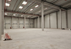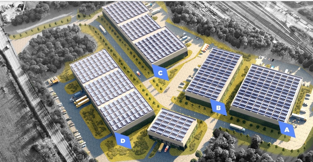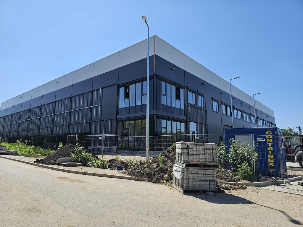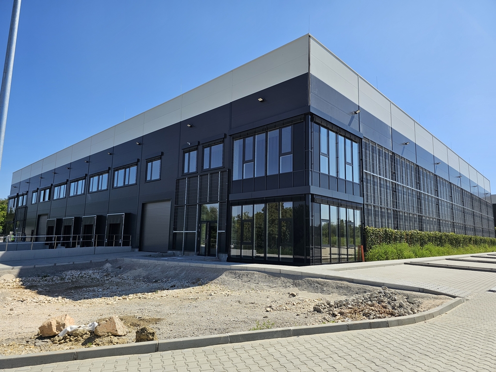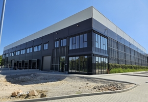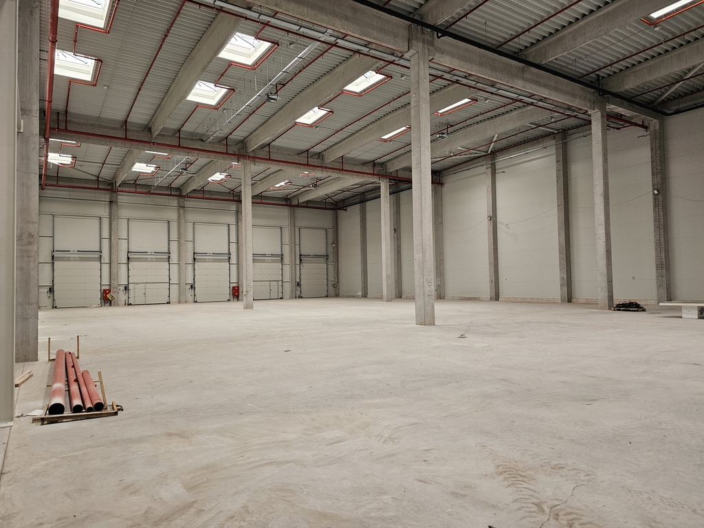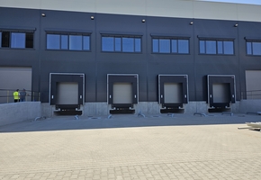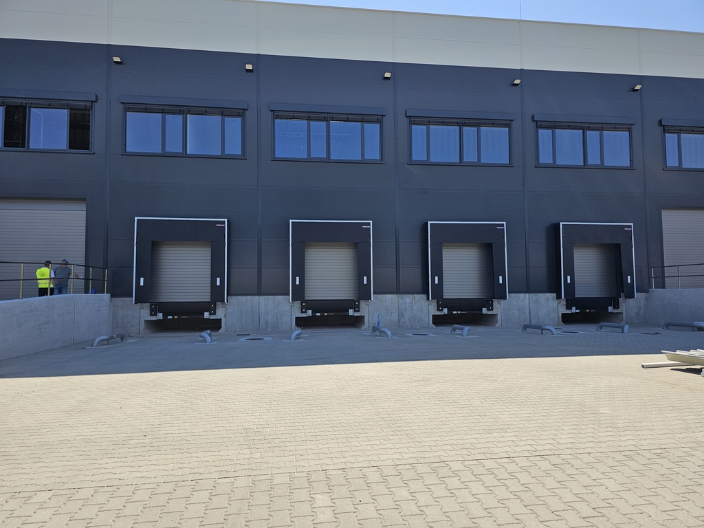 Technical parameters: dustfree concrete floor with 5ton/sqm loading capacity, docking and gates on field level paralelly, led lightning, solar panels.