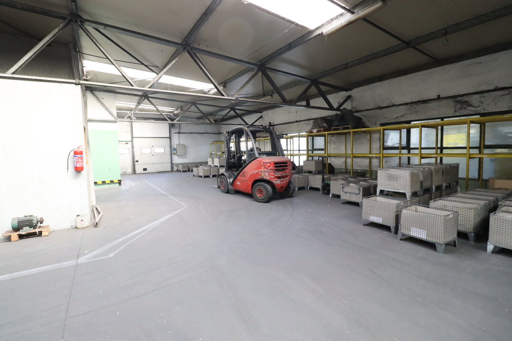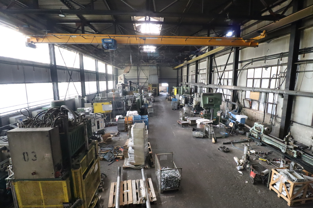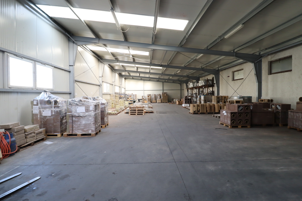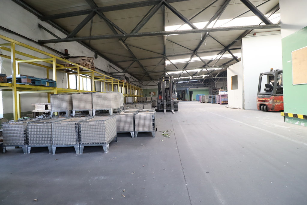 3. 1038 sqm unheated hall with an 8m ceiling height, equipped with a 6.3t crane, its own sanitary facilities, office, a 5.4m*5.1m gate, and a 3m*3.3m gate
