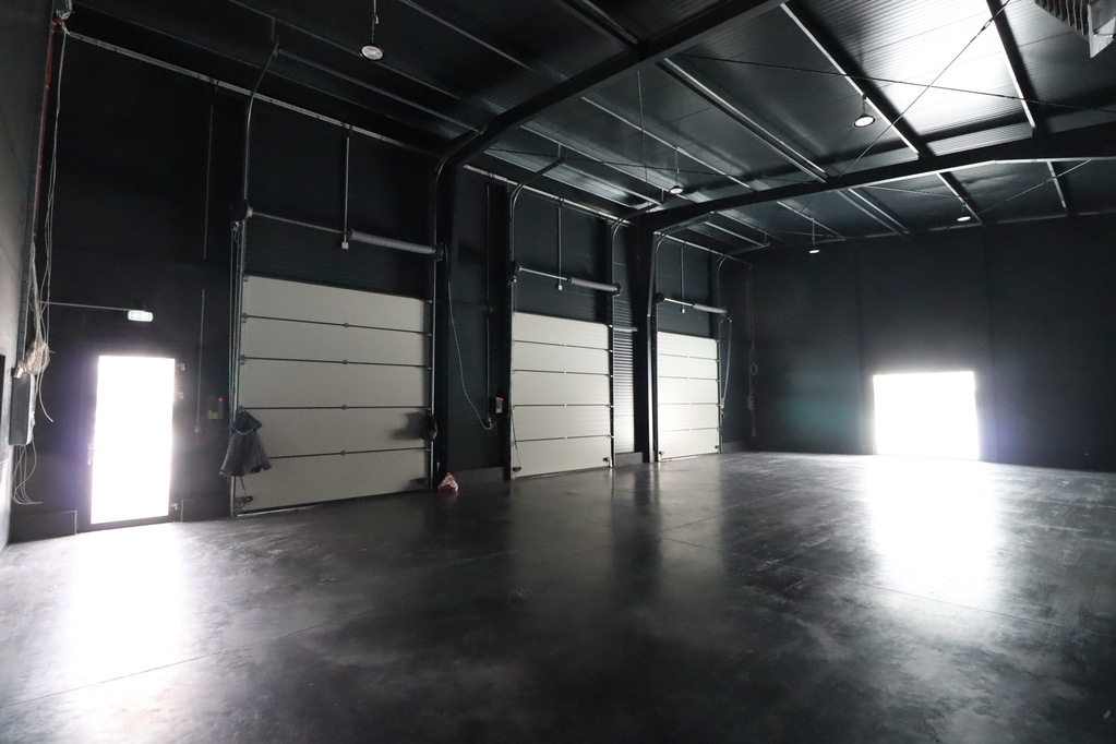 560 sqm warehouse hall equipped with 3 pcs 4 × 4.5 m and 3 pcs 3 × 3.5 m industrial doors