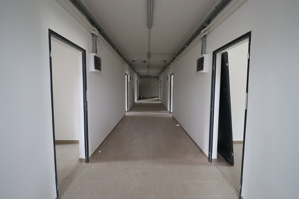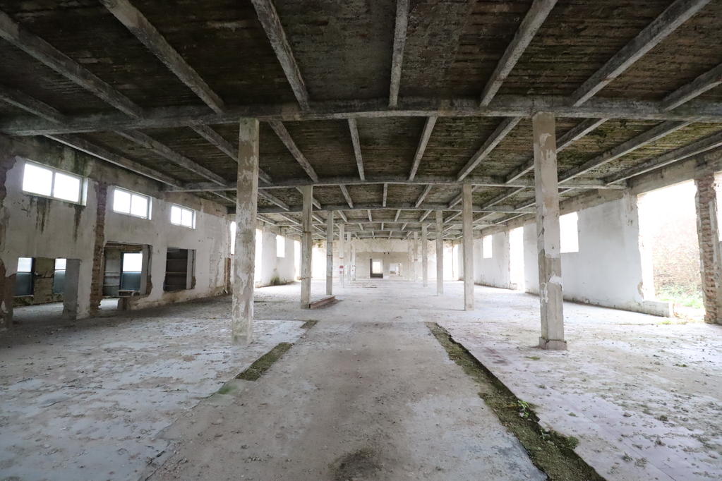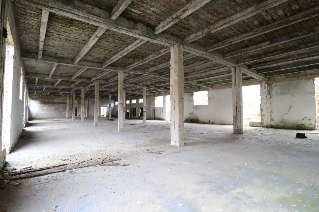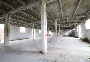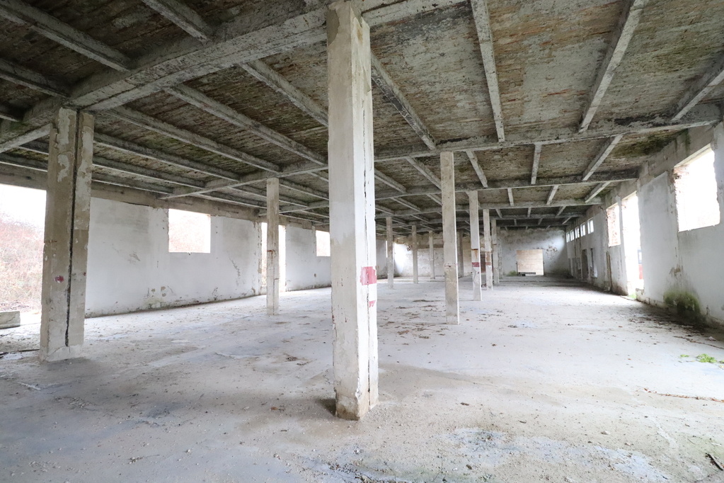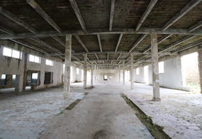 A 1,550 sqm hall with a 5 m internal height, reinforced concrete frame with brick walls, prepared for renovation but entirely requiring refurbishment (2/3 open space, 1/3 divided)