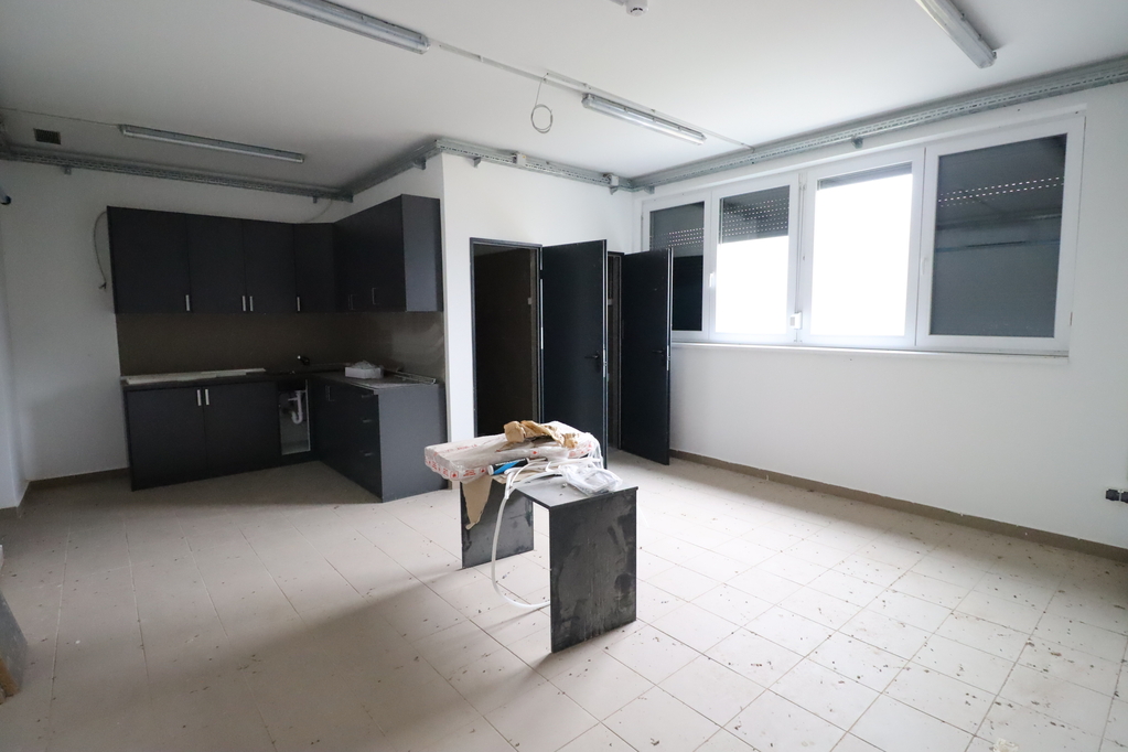 A 2-storey office/workshop building, 450 sqm per floor, with a cellular layout and central corridor, 3 m internal height, fully renovated recently (10 cm external insulation, new triple-glazed windows, external and internal mechanical and aesthetic renovation, heating and cooling with air-conditioning units)