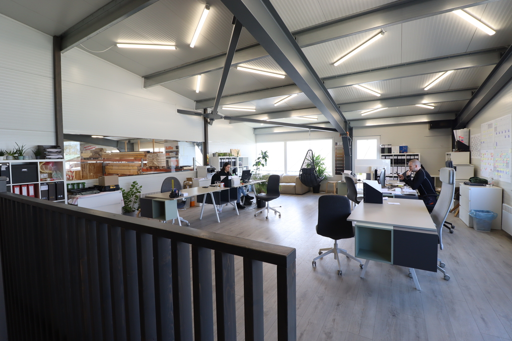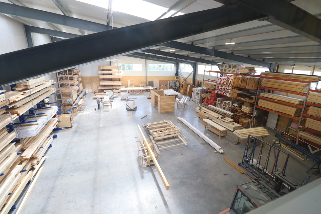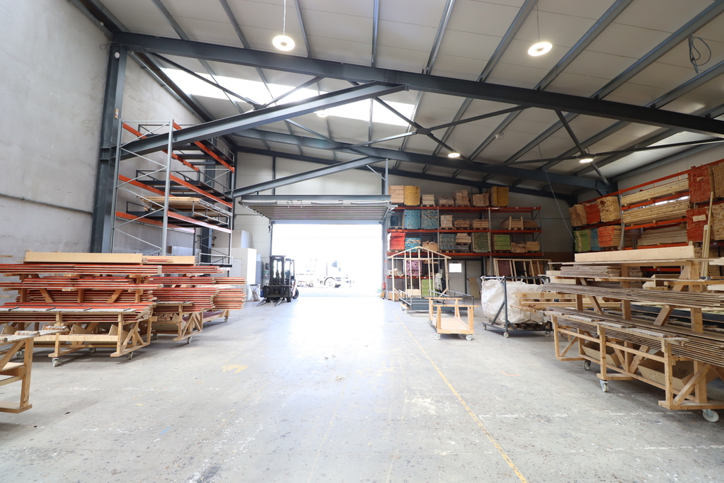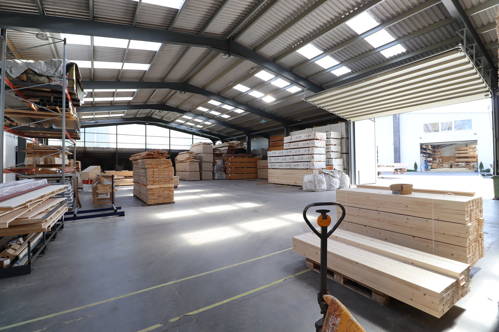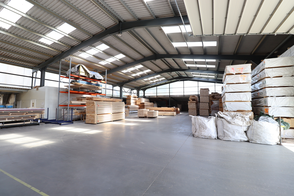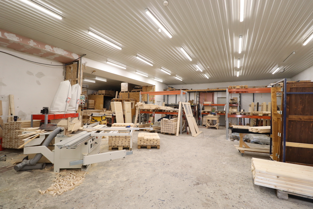 1,700 sqm insulated steel-framed sandwich panel hall, with a clear height of 6–9 meters and two level-access doors measuring 6.5×4.5 m. A 120 sqm mezzanine office area has been built inside. The building was constructed in 2021.