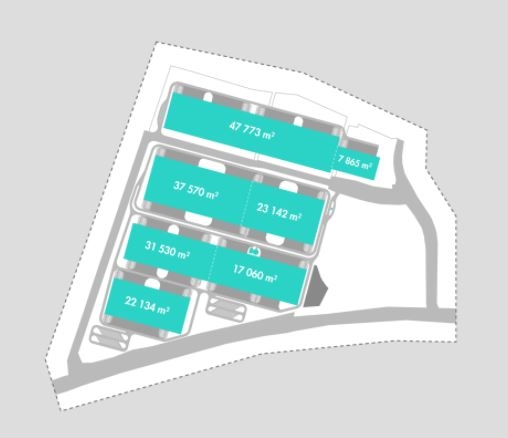 According to the standards the buildings have 10.5m floor to ceiling height, flexible office and social blocka area, 5t/sqm floor load capacity, one docking gate per 1000sqm, one drive in gate per 6000sqm, fire alarming system, sprinkler.