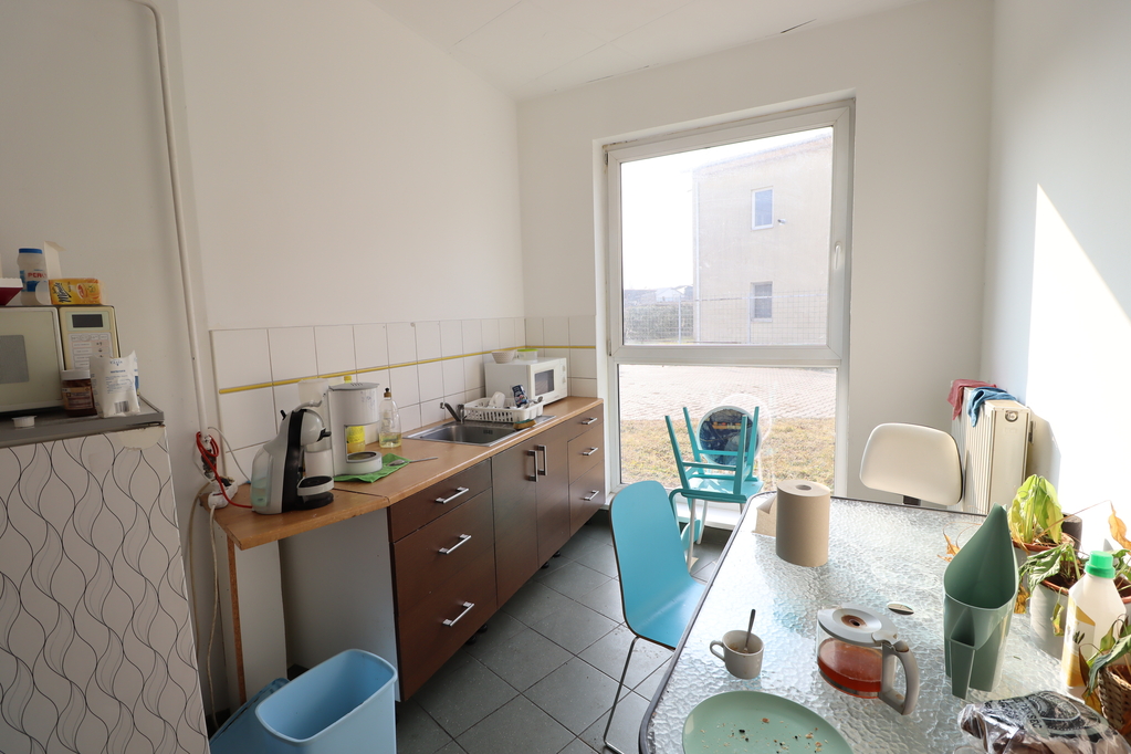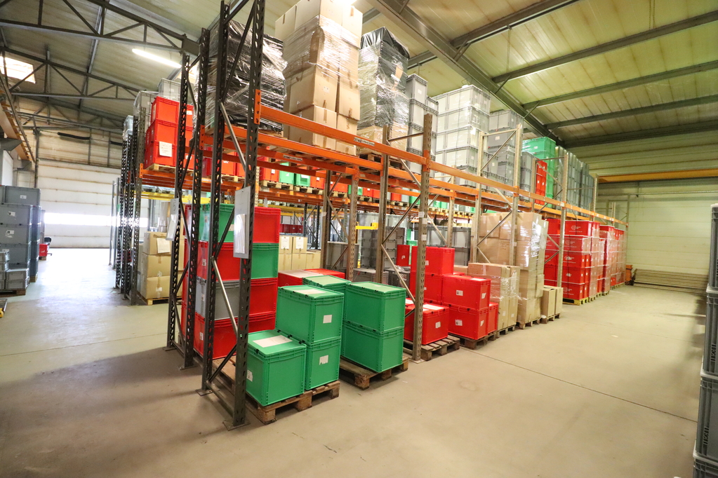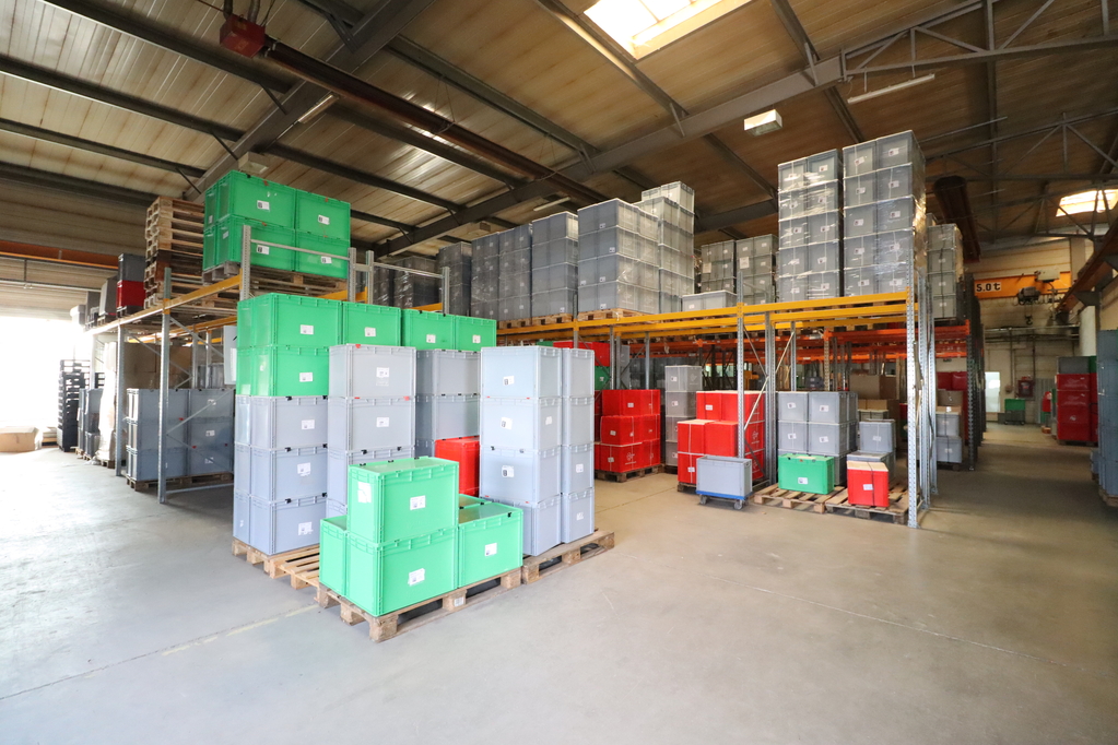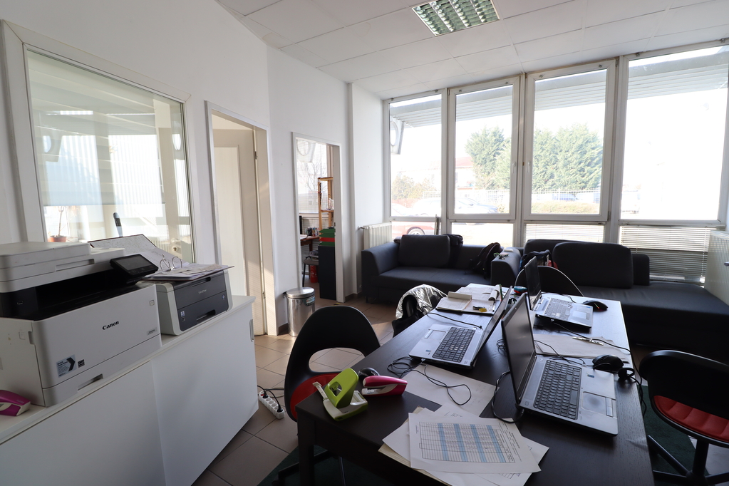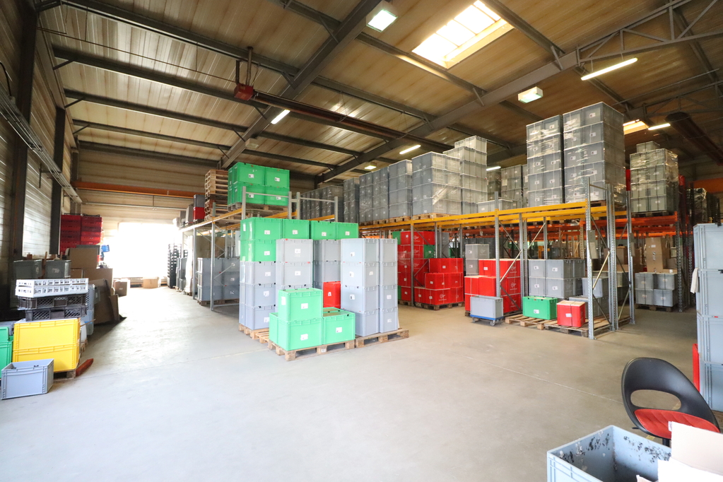 Located in a zone accessible without total weight restrictions, a 600 sqm heated warehouse with a crane (currently partially shelved) and a 98 sqm office and social block in a head building is available for lease!