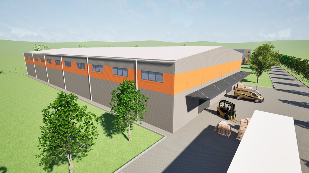 The property is located on a 5,000 sqm plot and features a 2,000 sqm industrial hall, with handover scheduled for Q1 2027.