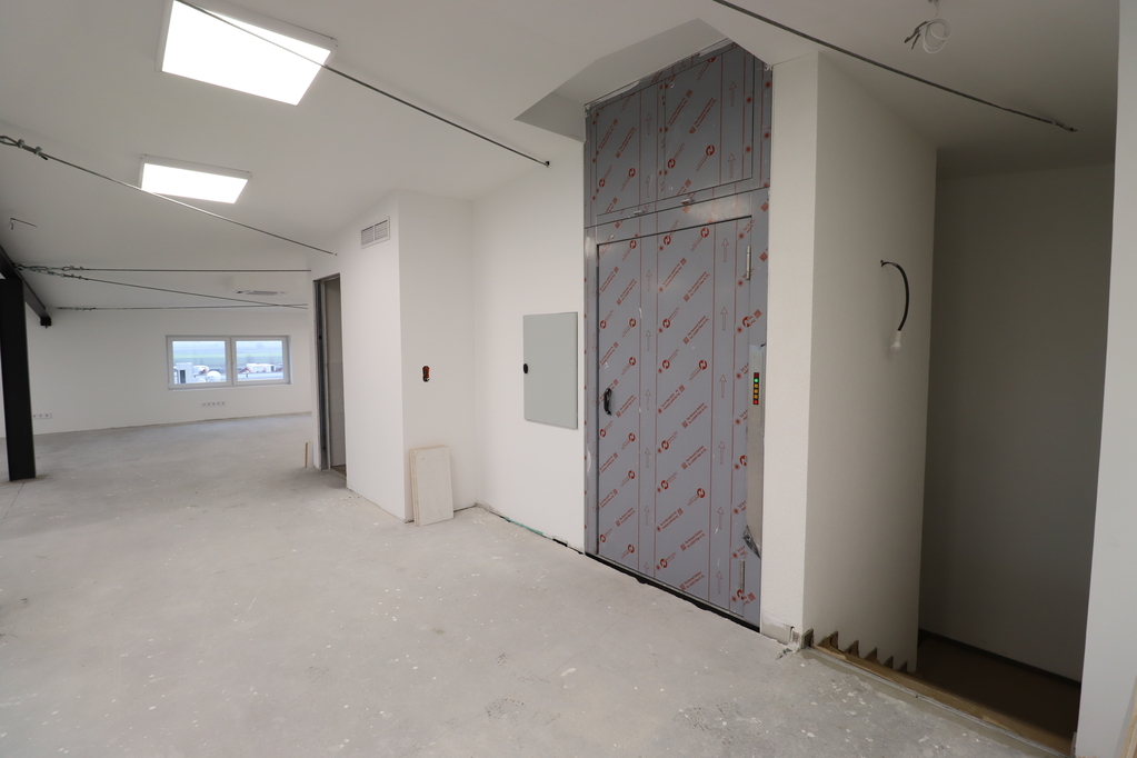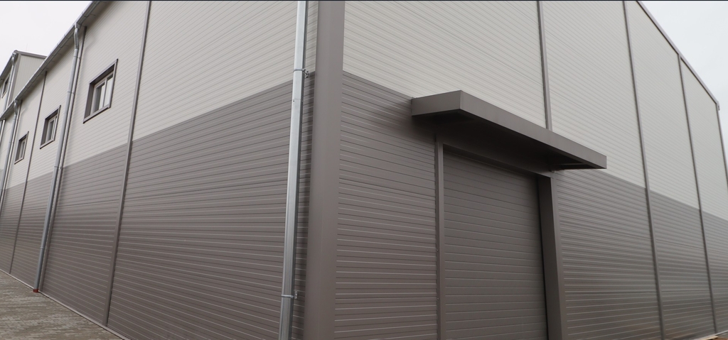 The complex consists of a 500 m² high-bay warehouse and a 4-storey head building, each floor measuring 240 m².