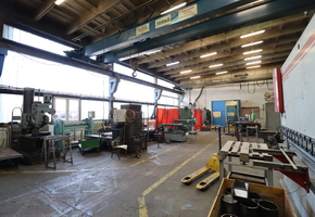 288 sqm heated workshop with 6.6 m internal height, equipped with 8-ton and 2.7-ton overhead cranes, with a 3.2 × 6 m Scandoor gate